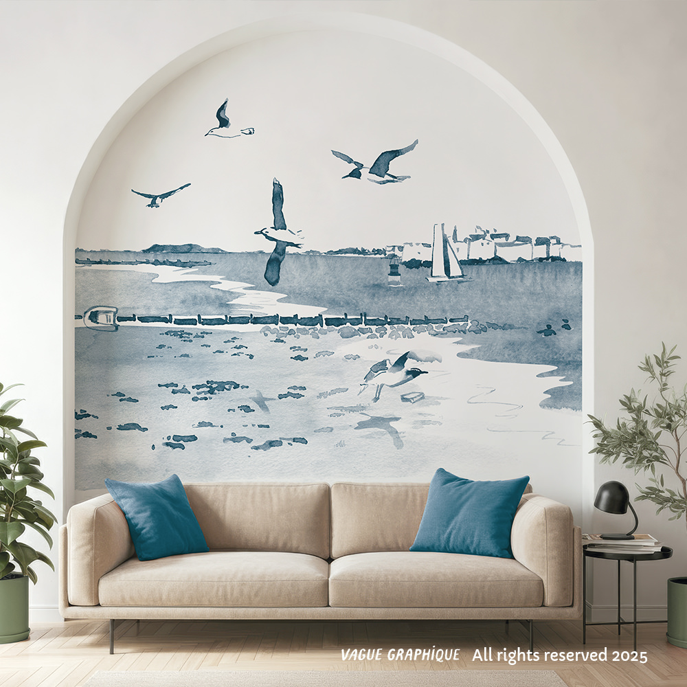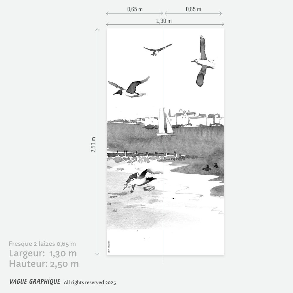 • Signature Vague Graphique présente une fois sur la fresque, à la verticale.